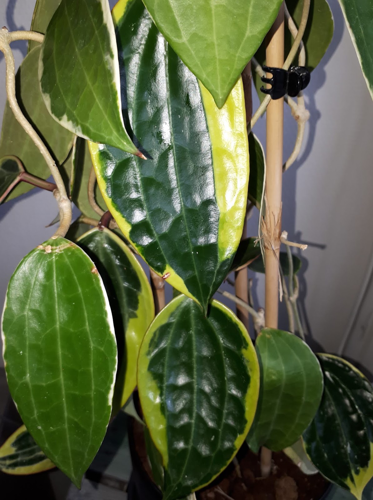 De "gewone" Hoya compacta met wel hele zwarte bladeren, deze Hoya
